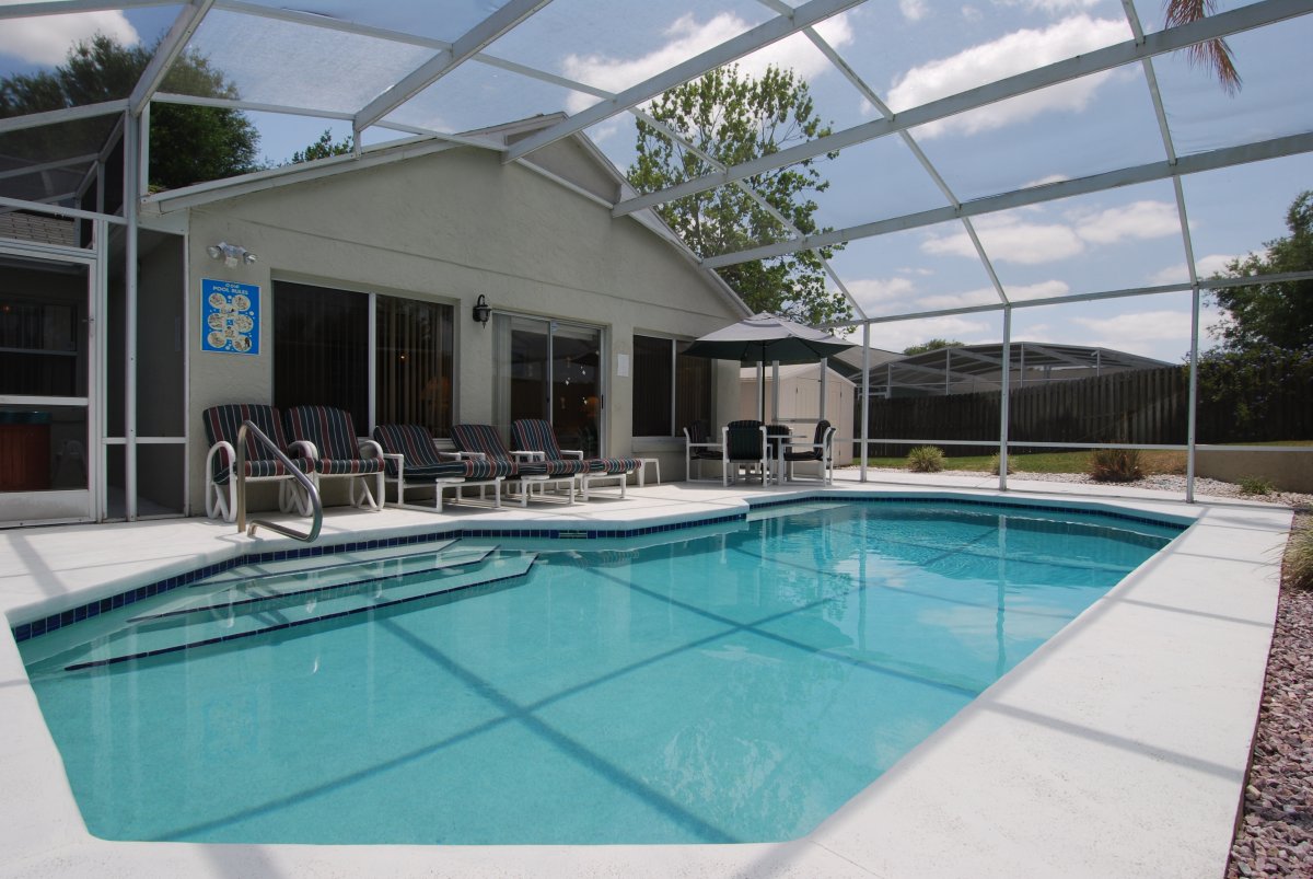 | Pool and Patio Area - Imagine, your own pool to have fun, relax or cool off in! Sit outside for your breakfast or BBQ in the afternoon or evening. The patio area and pool get the sun all day so sunbathe either inside or outside the pool screen on the extended patio and enjoy the new pool furniture. Let the kids play in the fully lawned garden that is enclosed by a fence for your privacy. Just think, the children can enjoy themsleves in a safe secure environment while you can relax and concentrate or your sunbathing! | Jacuzzi/Hot Tub - How would you like to come home to a relaxing soak in the Jacuzzi/Hot tub after a day at the parks or out shopping! Or even have a day lazing around the villa and the jacuzzi. In the evening have a drink whilst soaking in the hot water and enjoy watching the sun go down. Great fun, relaxing and can accommodate up to 6 adults. |